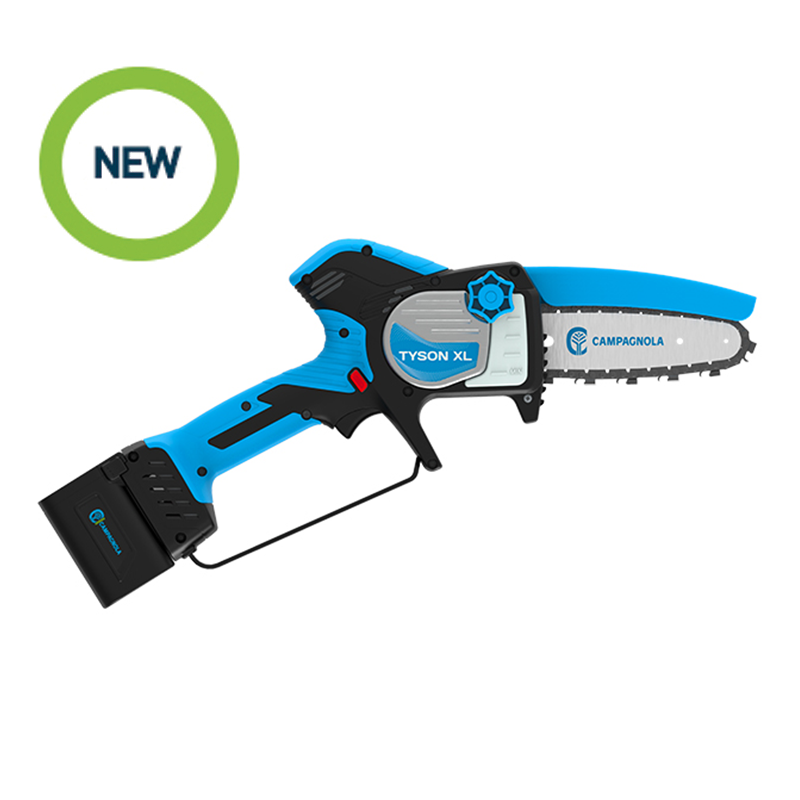 Akumulatorska pila Tyson XL tvrtke Campagnola profesionalna je pila za rezidbu dizajnirana kako bi jamčila još veće performanse. Zahvaljujući nominalnom naponu od 21,6 V i litijevoj bateriji od 4 Ah, nudi konstantnu snagu i dugu autonomiju, idealno za obavlajnje čak i najzahtjevnijih poslova. S promjerom rezanja do 12 cm i rasponom od oko 140 rezova po ciklusu punjenja, Tyson XL osigurava učinkovitost i kontinuitet. Lanac od 1/4” s 34 zuba, koji postiže brzinu od 10 m/s na vodilici od 5”, omogućuje brzo i precizno rezanje, smanjujući napor operatera na minimum. Pila je pogodna za maslinike, voćnjake, vinograde, nasade citrusa i općenite biljke. Unatoč svojoj vrhunskoj snazi, Tyson XL održava izvrsno rukovanje: s težinom od samo 1,56 kg (s baterijom) potvrđuje se kao idealan alat za one koji traže savršenu ravnotežu između snage, udobnosti i pouzdanosti. Nadalje, kompatibilan je s produžnom šipkom od 140-200 cm (prodaje se zasebno, pogledajte vezane proizvode), što vam omogućuje jednostavan rad čak i na visokim granama bez potrebe za ljestvama.