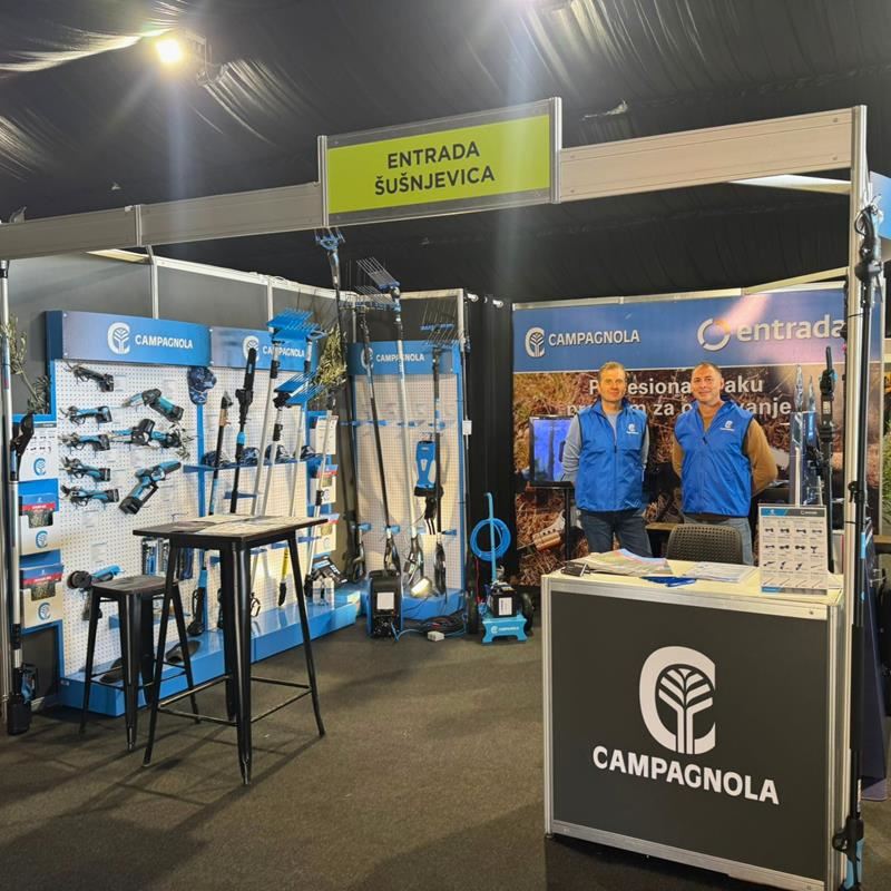 Tvrtka Entrada d.o.o. izlagala je i predstavljala Campagola profesionalne alate za maslinarstvo: tresače maslina, akumulatorske škare i pile, kompresore, agregate te raznu drugu opremu.